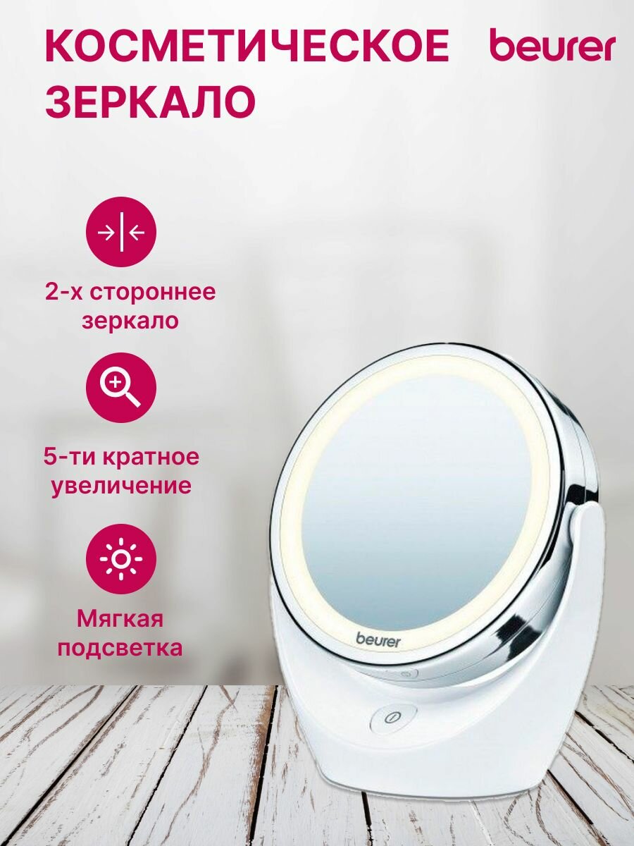 Купить Beurer зеркало косметическое настольное BS49 зеркало косметическое настольное BS49 с подсветкой, хром/белый