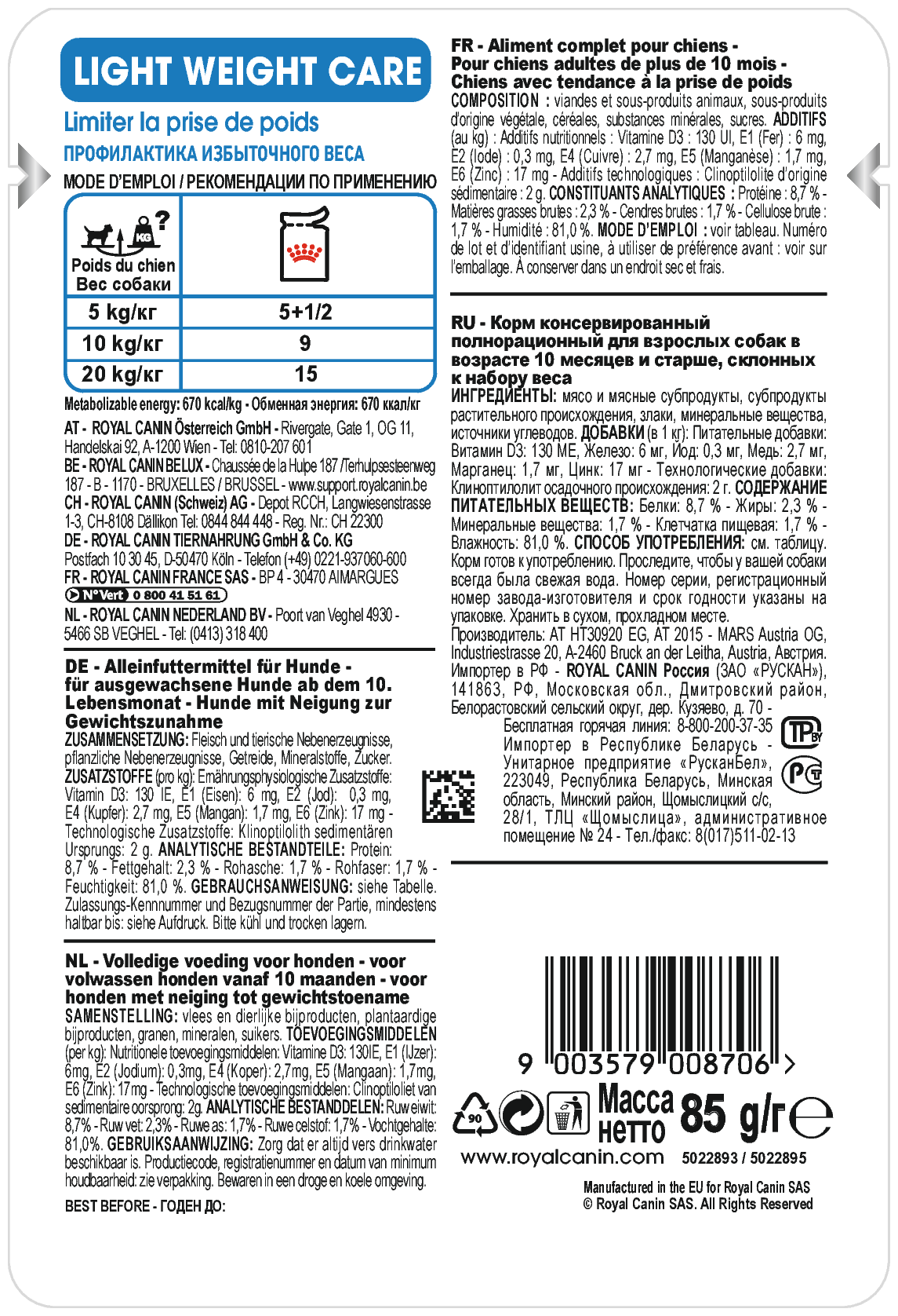 Купить Влажный корм для собак Royal Canin Light Weight Care с избыточным весом 85г х 12шт (пауч)