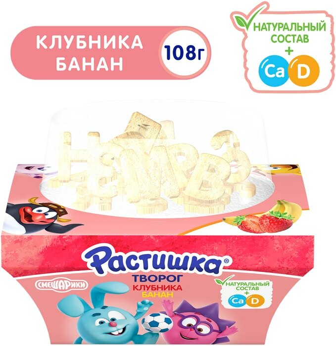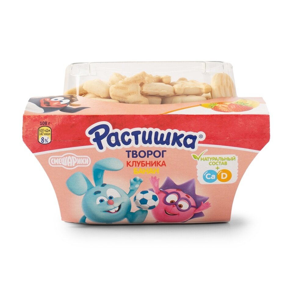 Купить Творог для детей растишка Клубника, банан с печеньем 3,5%, без змж, 108г