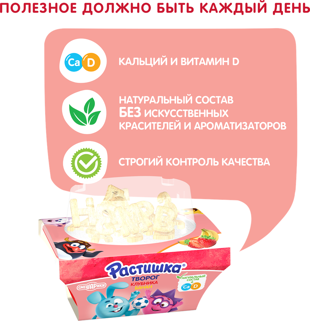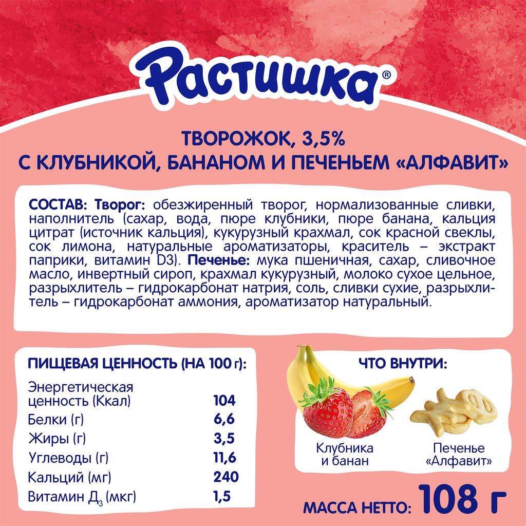 Творог для детей растишка Клубника, банан с печеньем 3,5%, без змж, 108г интересное: