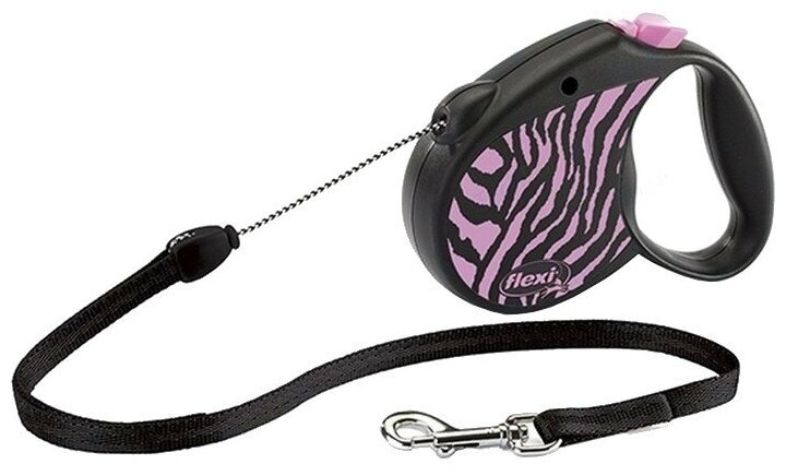Поводок-рулетка для собак Flexi Safari S тросовый розовая зебра 5 м до 12 кг