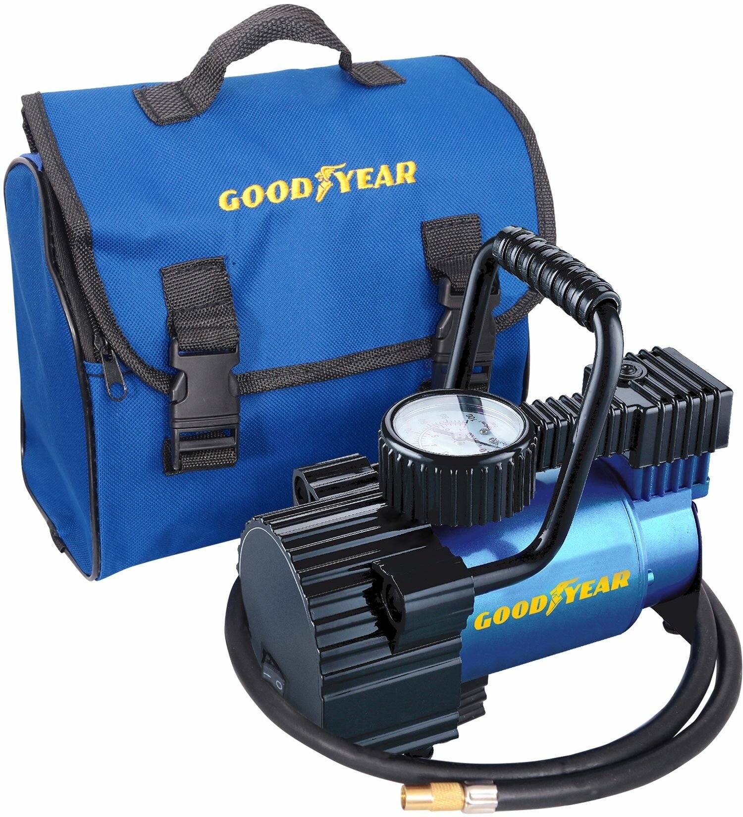 Воздушный компрессор Goodyear GY-80L 80 л/мин,/двухпоршневой/питание от АКБ/съемный витой шланг/сумка для хранения
