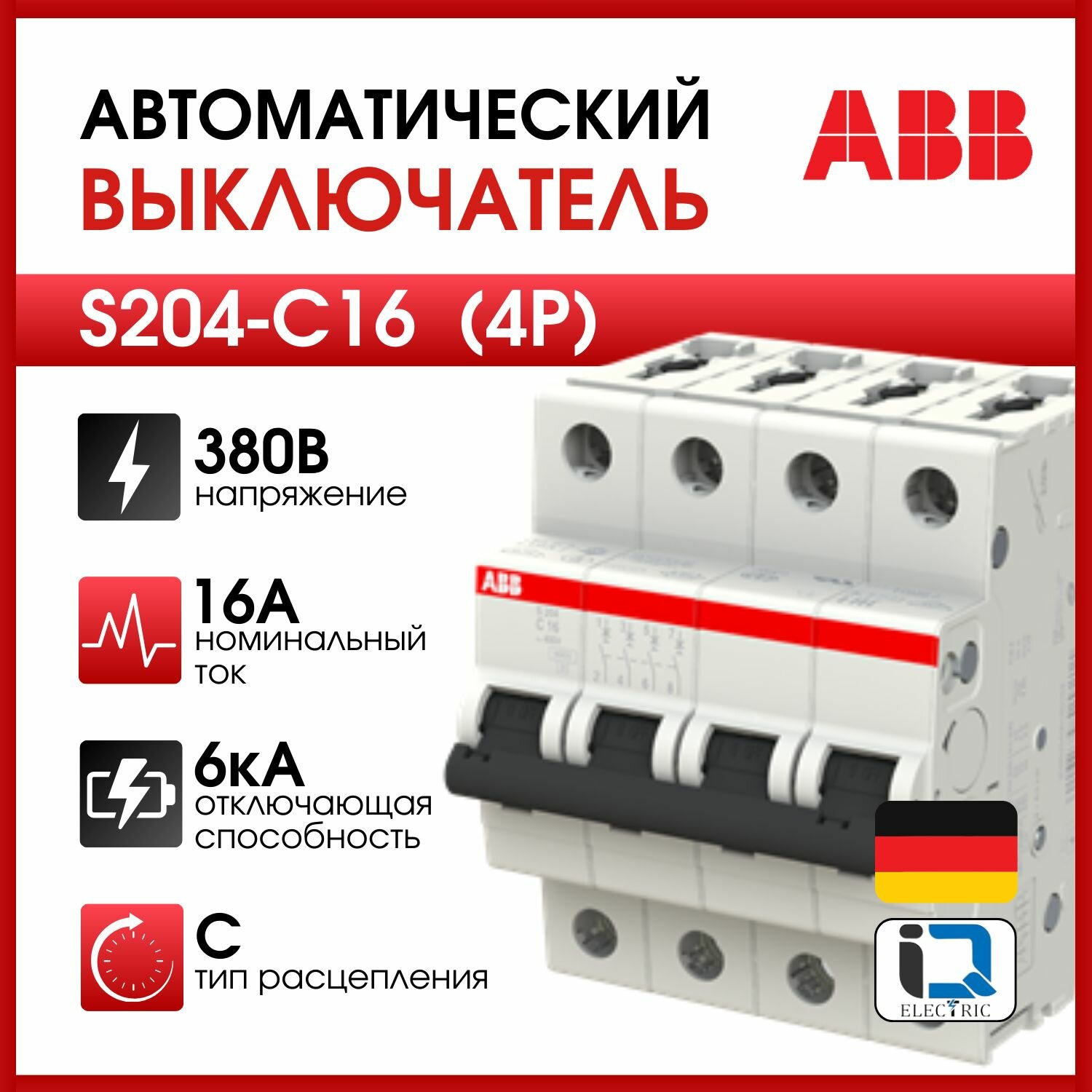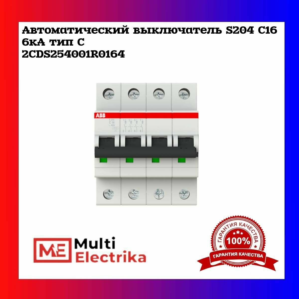 Автоматический выключатель ABB S204 C16 ампер, 4-полюсный, характеристика C (Оригинал)