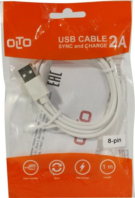 Кабель OLTO ACCZ-5015 USB-8-PIN, 1 м, белый