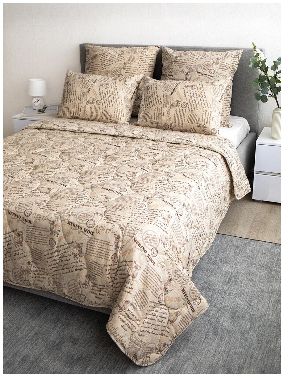 Одеяло из шерсти мериноса Волшебная ночь Нордтекс (бежевый), Одеяло 172x205 стандартное
