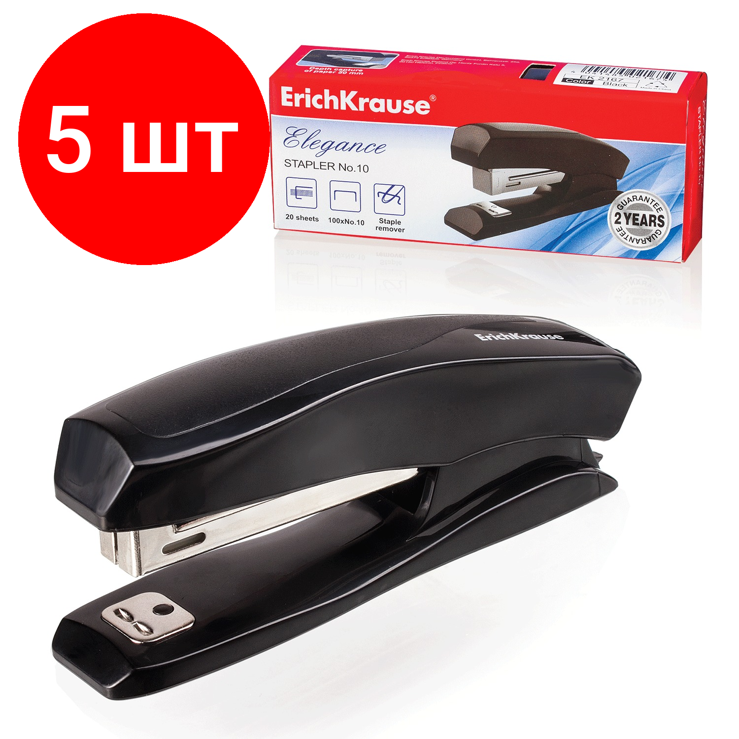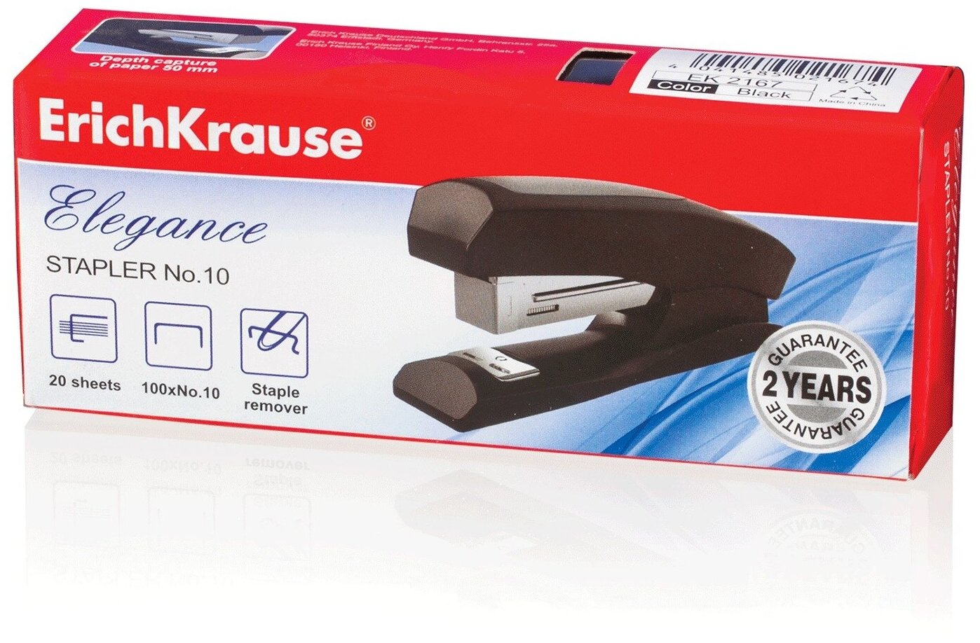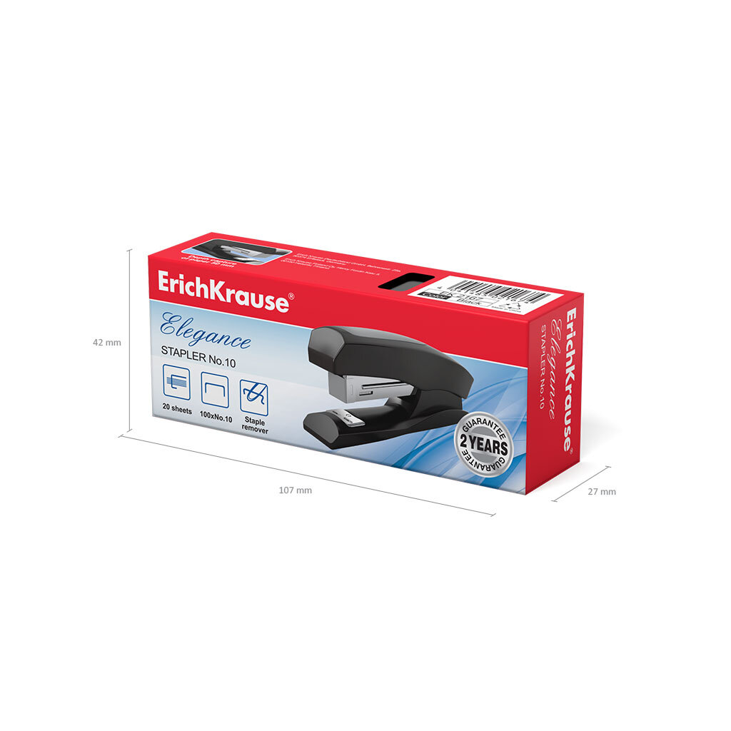 Степлер №10 ERICH KRAUSE "Elegance", до 20 листов, с антистеплером, черный, 2167 Комплект : 1 шт .