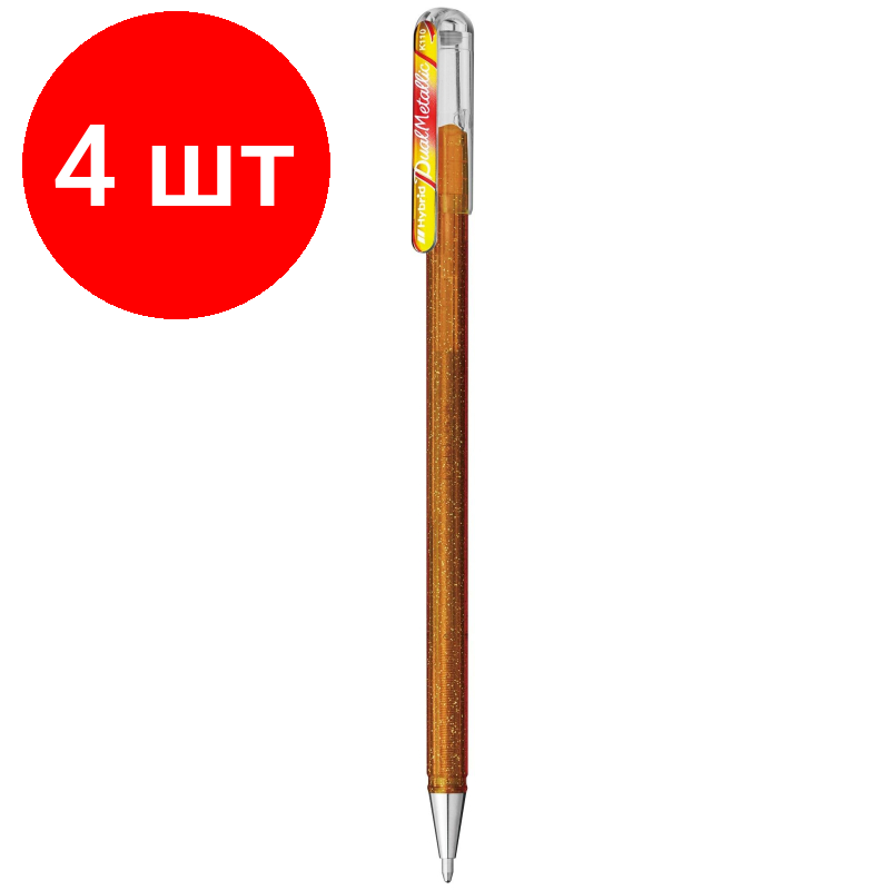 Купить Комплект 4 штук, Ручка гелевая Pentel Hybrid Dual Metallic 1мм хамел зол+крас&зол K110-DMXX