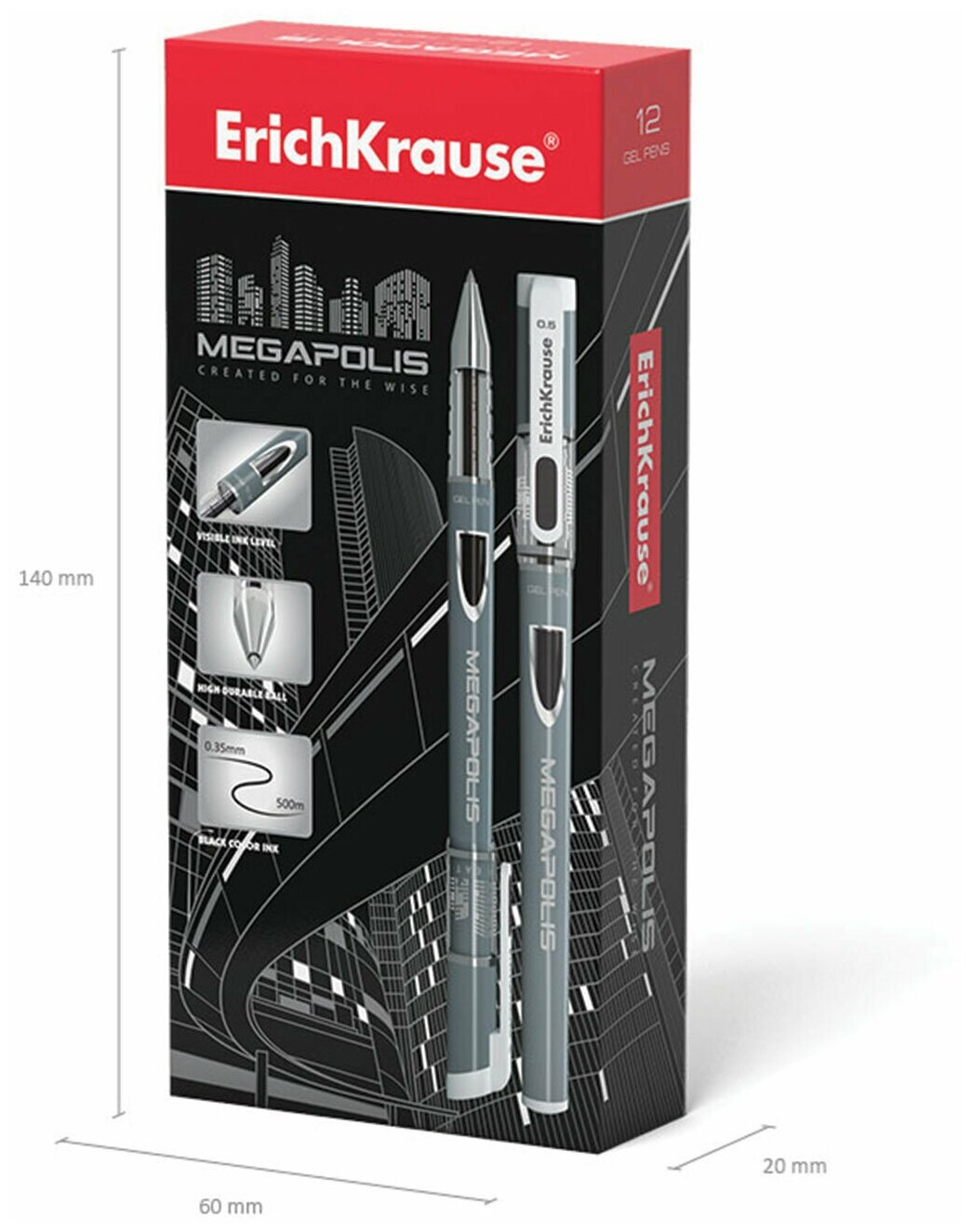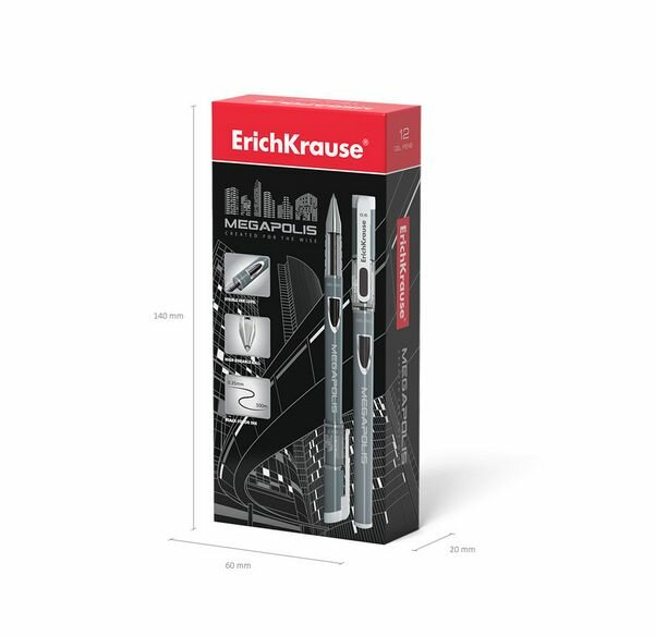 Ручка гелевая ERICH KRAUSE Megapolis Gel 0,5 мм, черная, 12штук