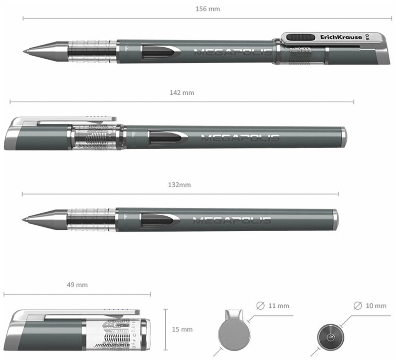 Ручка гелев. Erich Krause Megapolis Gel (92) серый d=0.5мм син. черн. линия 0.35мм (12 шт. в упаковке)