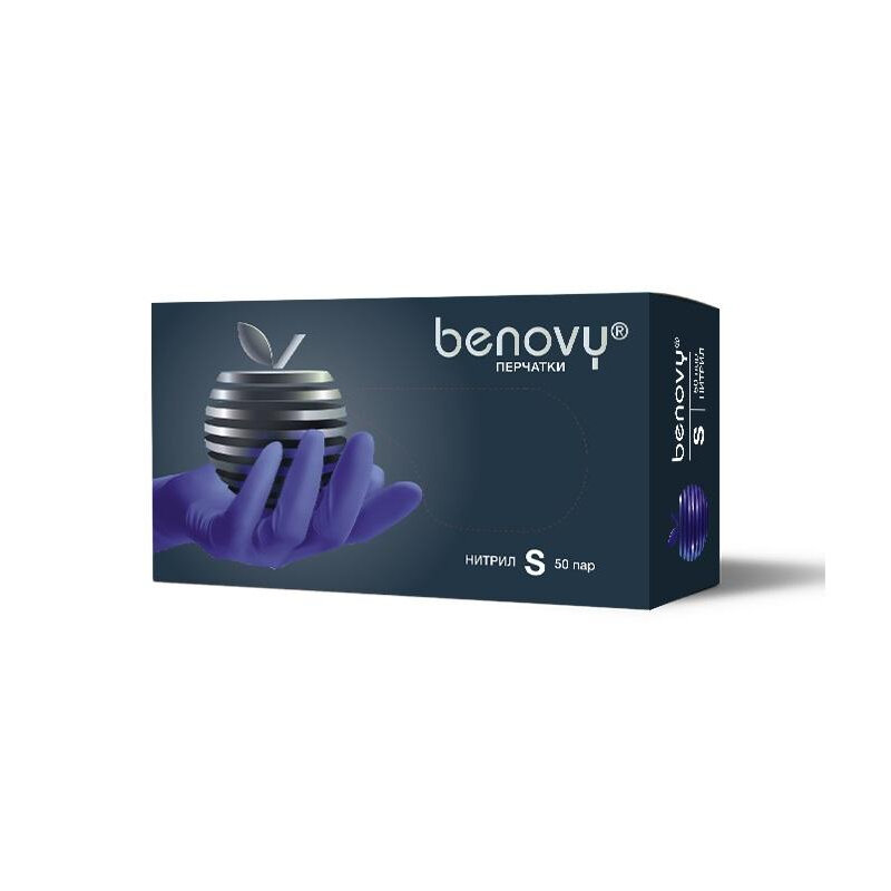 Перчатки Benovy нитриловые медицинские голубые 3 гр S 100 пар(100 шт.)