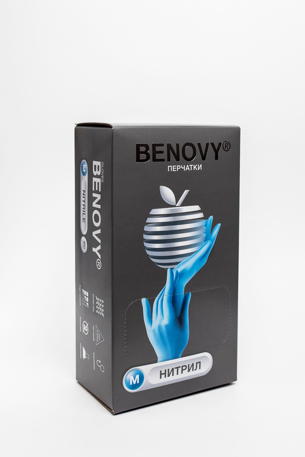 Перчатки одноразовые нитриловые смотровые Benovy с текстурой на пальцах, голубые, нестерильные, размер M, 100 пар, 10 уп.