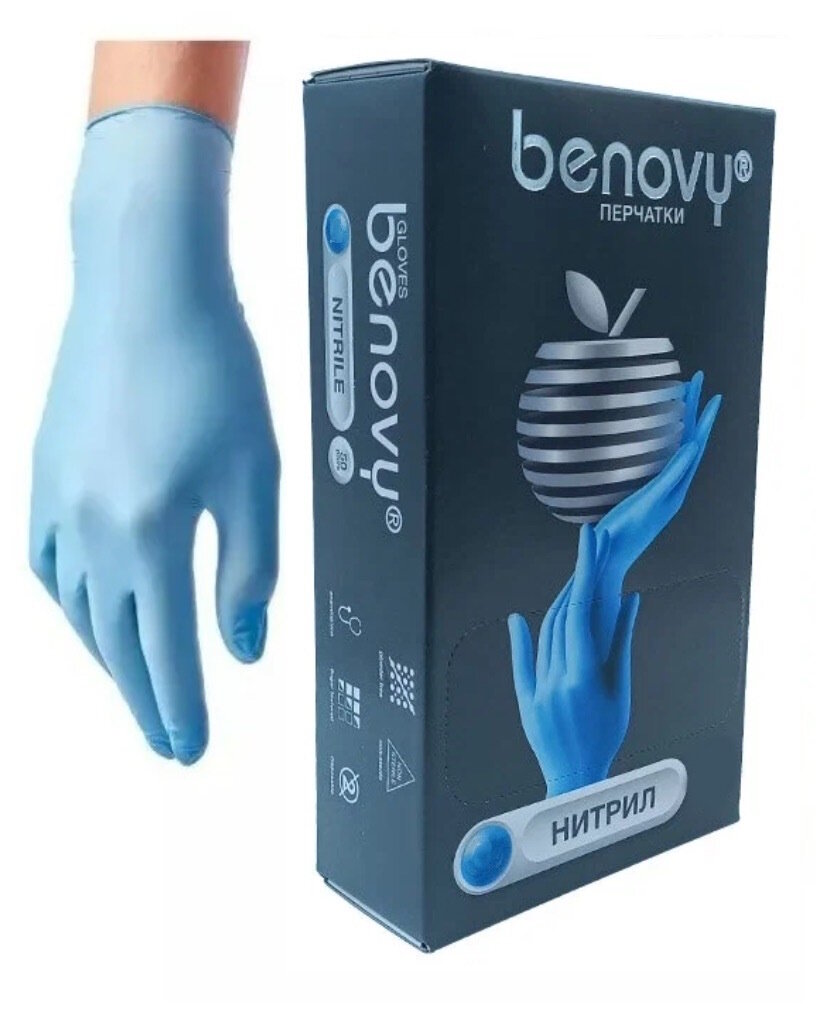Перчатки Benovy медицинские нитриловые голубые XS 3,0 гр 50 пар(50 шт.)