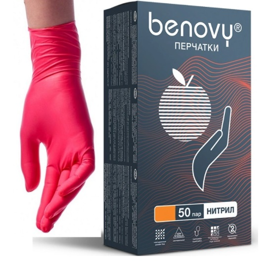 Купить "Перчатки нитриловые Benovy L (красные), 100 шт (50 пар)"