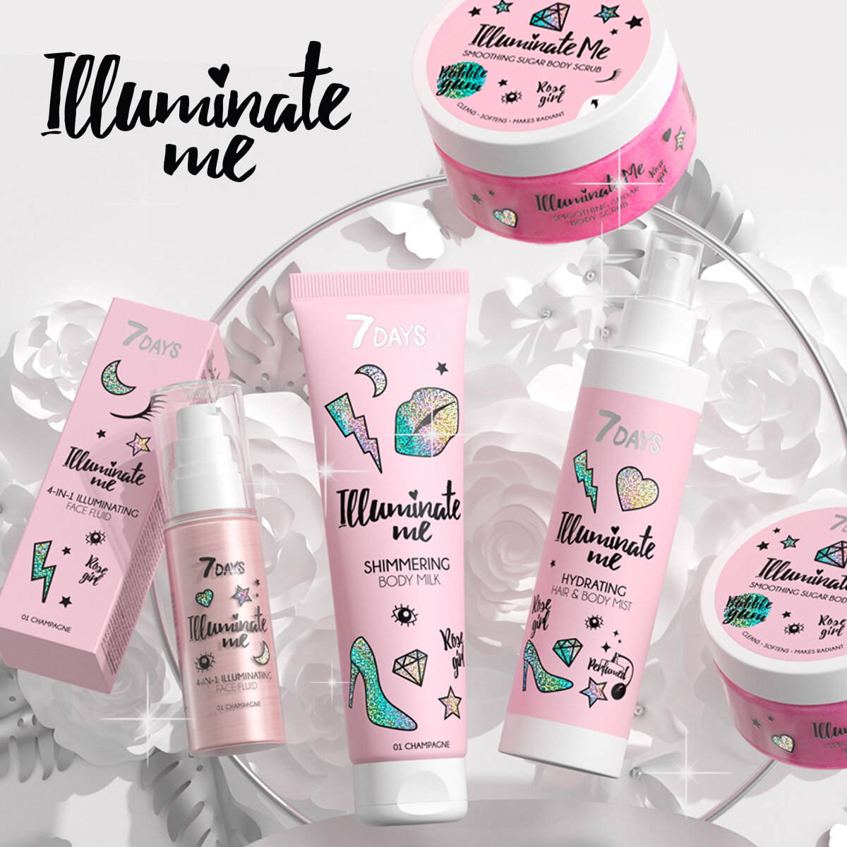 7 DAYS Смягчающий сахарный скраб для тела ILLUMINATE ME ROSE GIRL 220мл