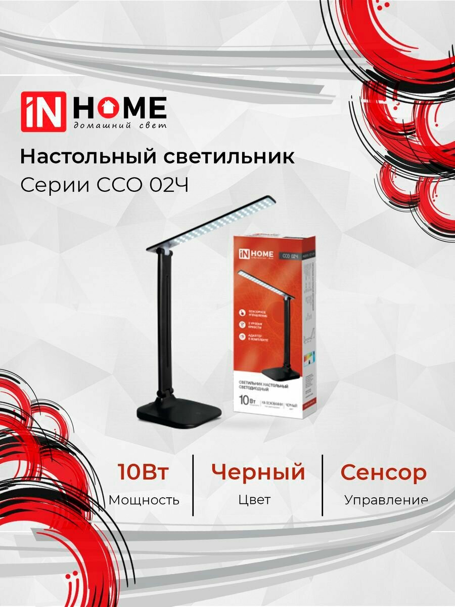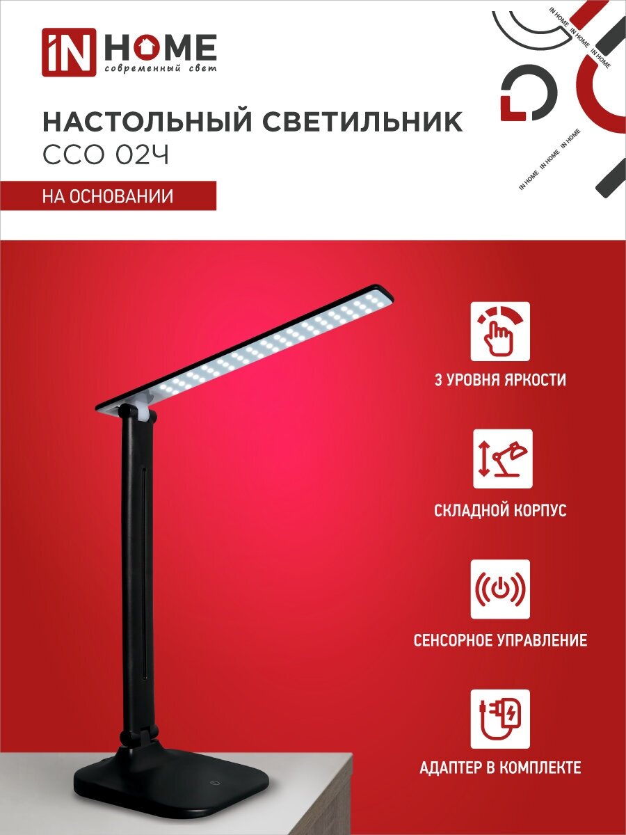 Светильник настольный светодиодный ССО 02Ч 10Вт 4000К 625лм сенсор-диммер адаптер черн. IN HOME 4690612013480 (1 шт.)