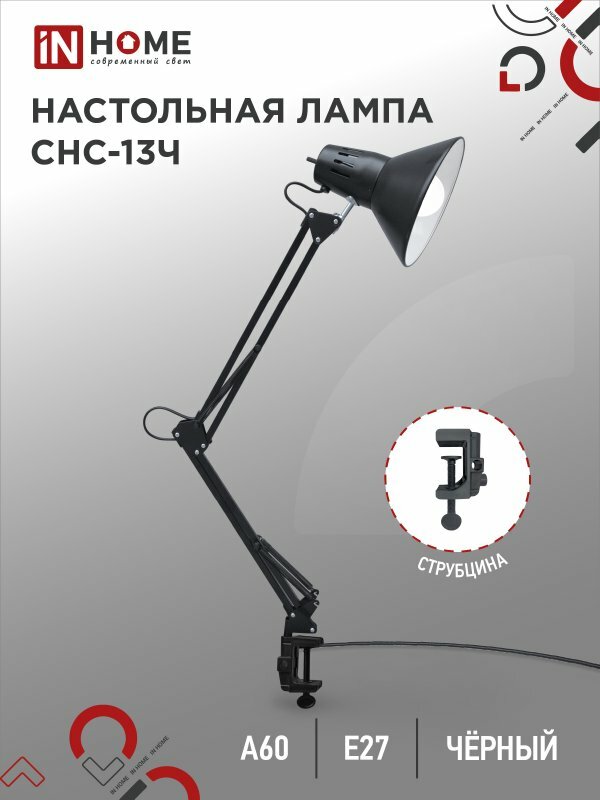 Купить 4690612012735 Светильник настольный под лампу СНС 13Ч на струбцине 60Вт E27 230В черн. (коробка) IN HOME