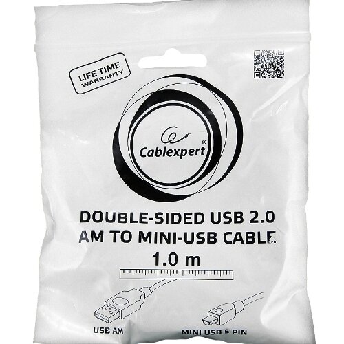 Кабель USB2.0 Am-miniB Cablexpert CC-5PUSB2D-1M двусторонний Am - 1 метр