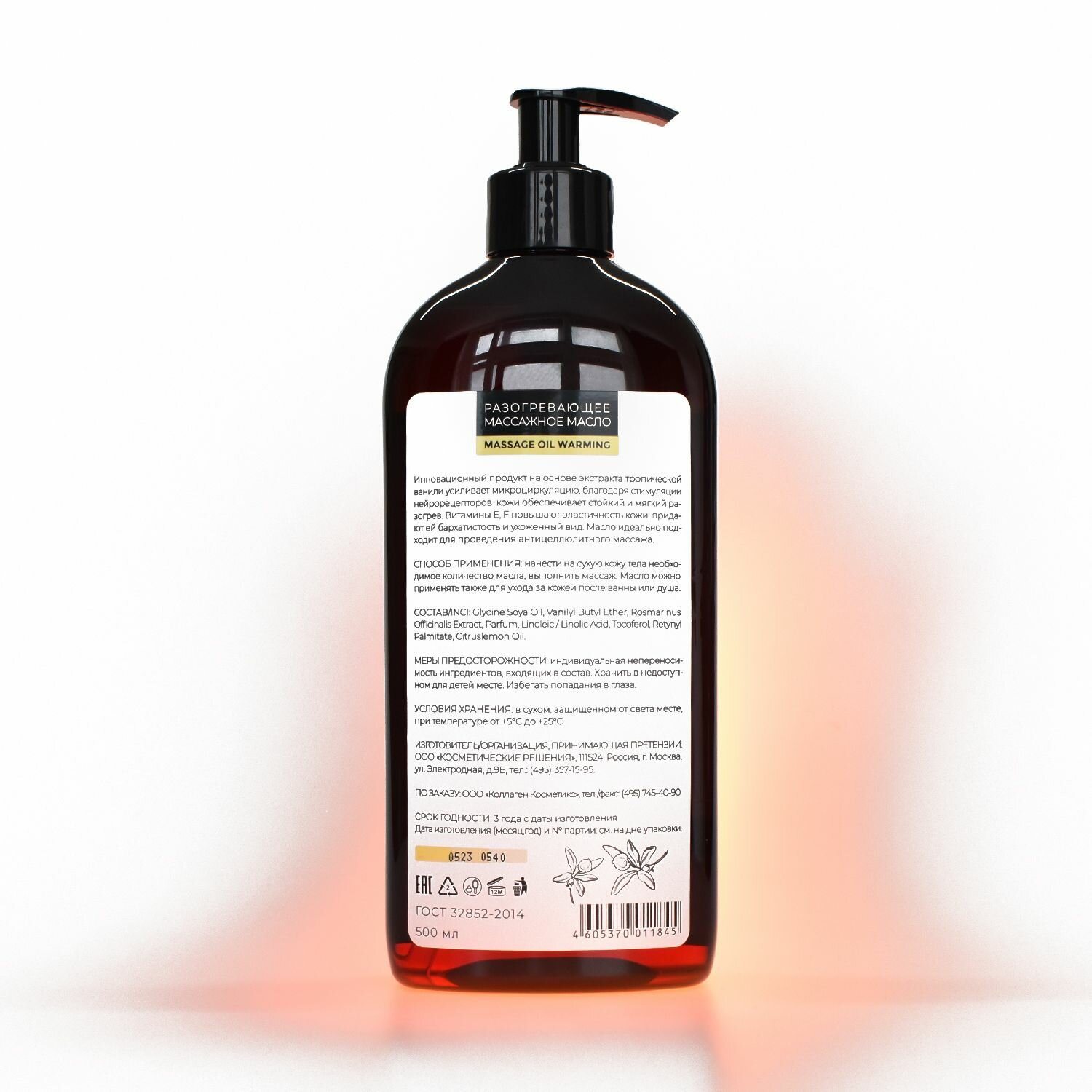 Масло массажное разогревающее для тела 500 мл