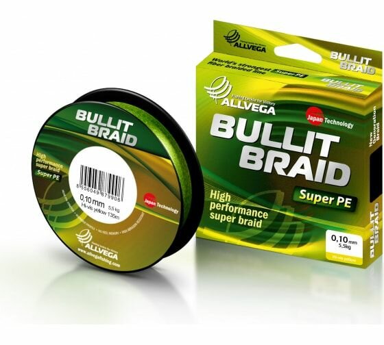 Шнур Bullit Braid Allvega 135м, 0,20 мм, 13.7 кг, желтая