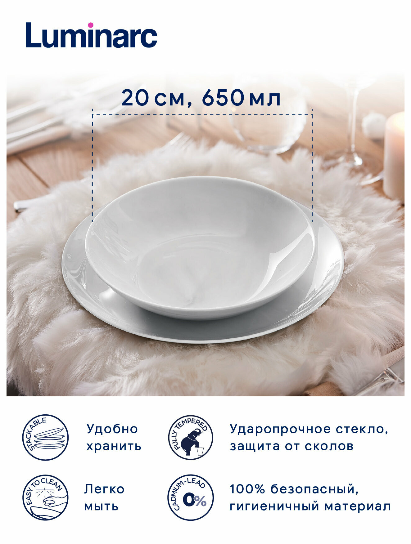 Тарелка глубокая D=20 см, Luminarc 3013440