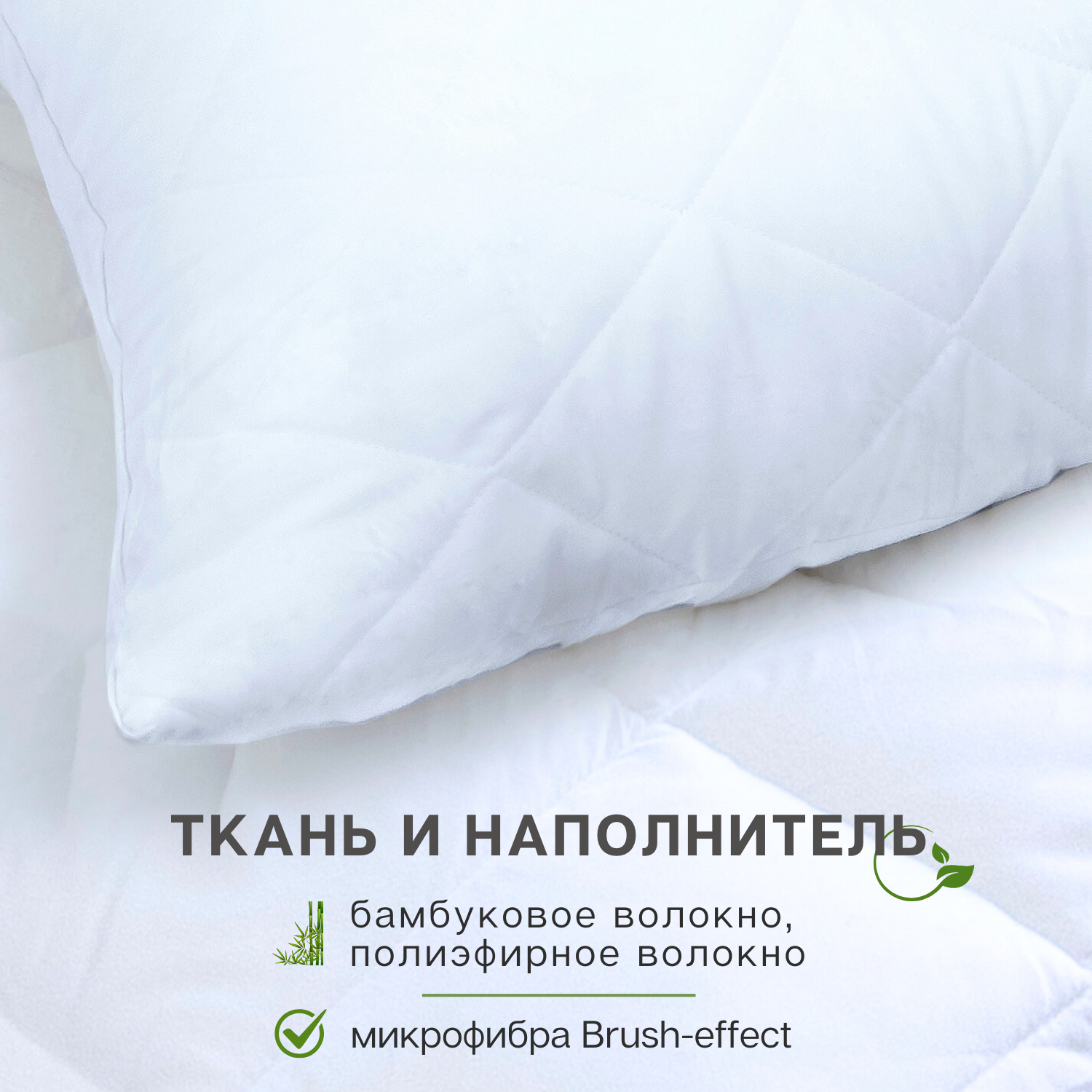 Подушка бамбук 70х70 см Мягкий сон гипоаллергенная для сна на спине, на животе, на боку / под голову / для взрослых / на дачу / для детей / для беременных / для путешествий / для шеи / для кормления / в подарок / мягкая