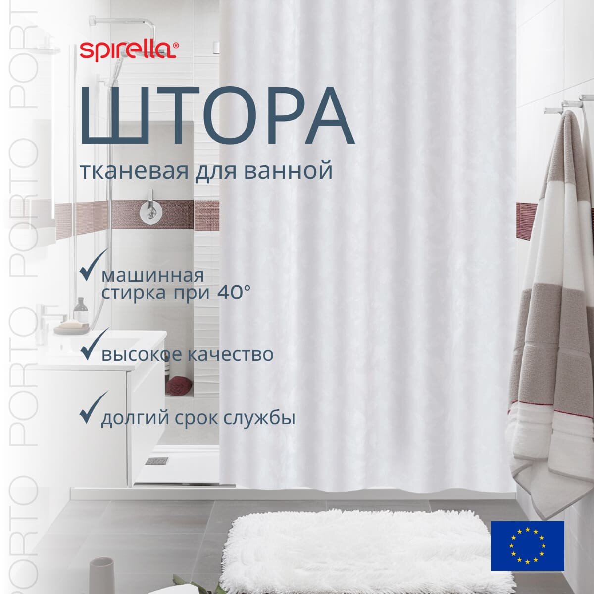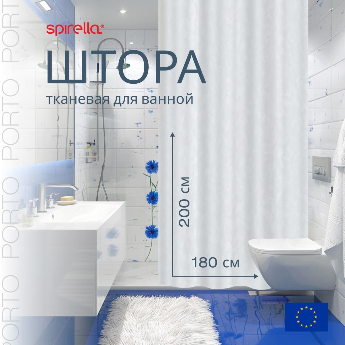 Штора для ванной Spirella Porto, 180x200см, текстиль, белый 1033938