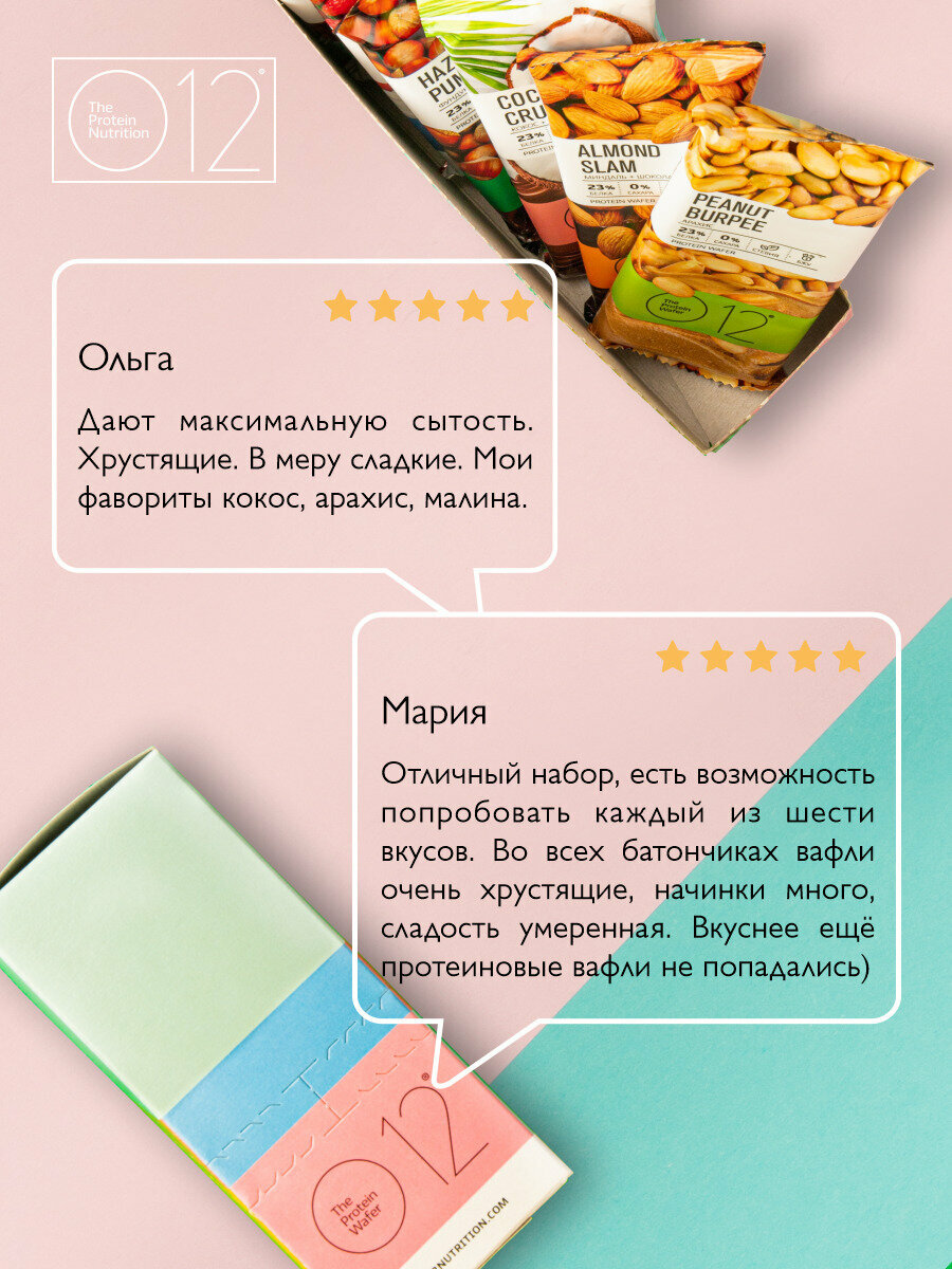 Ниже Вы можете прочитать отзывы на Протеиновые вафельные батончики О12 без сахара пп Ассорти вкусов, 12 штук по 50 г, ознакомится с подробными характеристиками, посмотреть интересные обзоры и фотографии на Протеиновые вафельные батончики О12 без сахара пп Ассорти вкусов, 12 штук по 50 г.