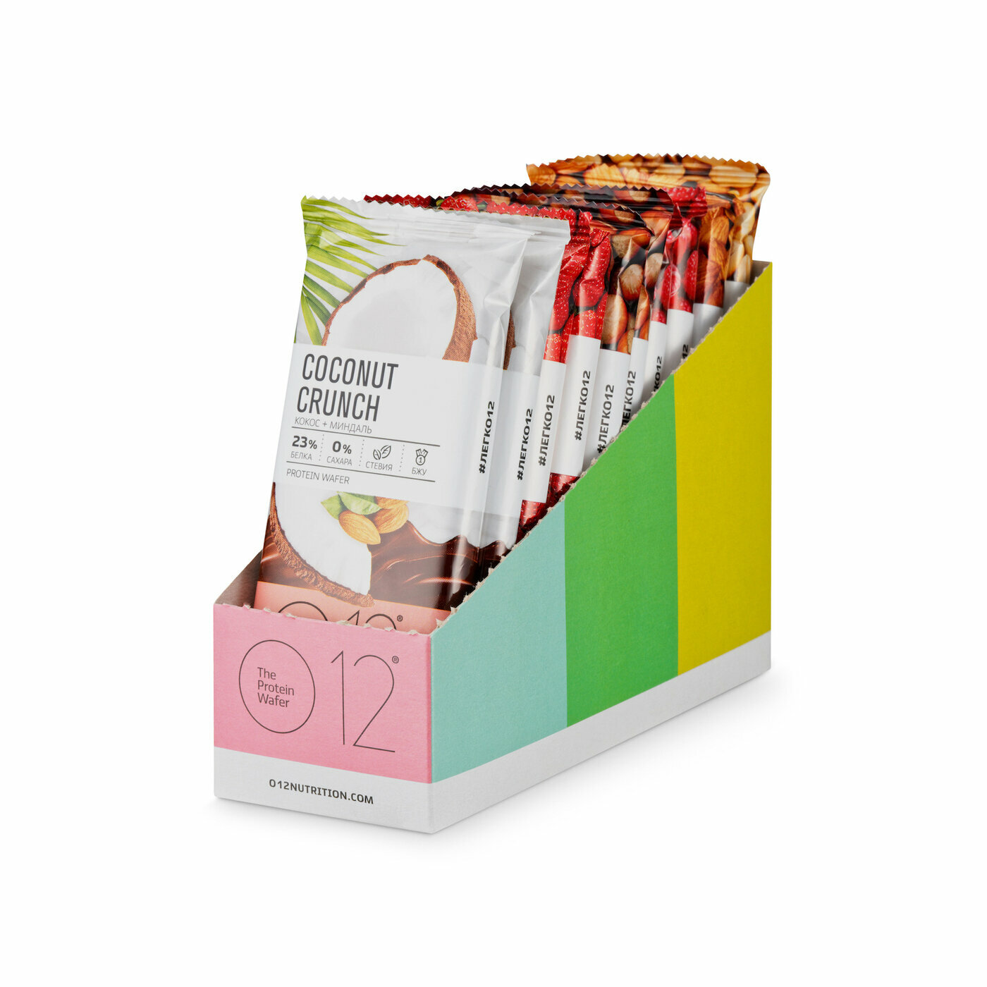 Вафельный батончик О12 протеиновый с кокосом и миндалем в молочной глазури 50гр, 12 шт