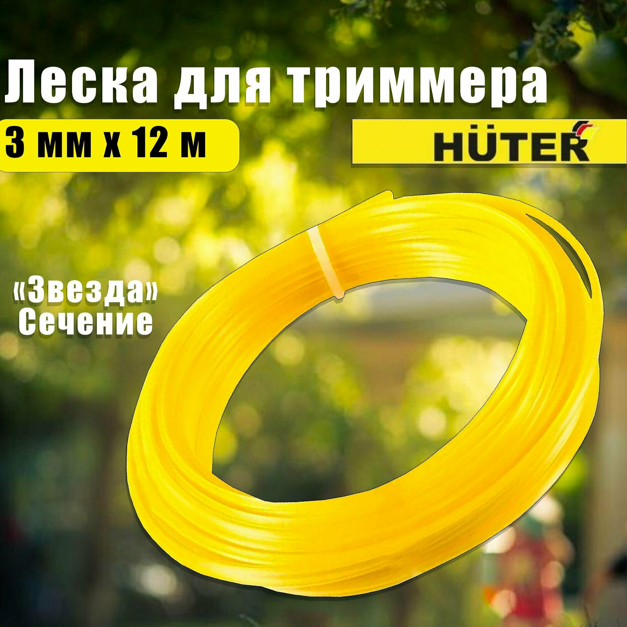 Леска для триммера 3 мм, 12 м, звезда, Huter, S3012, жел, 71/2/2