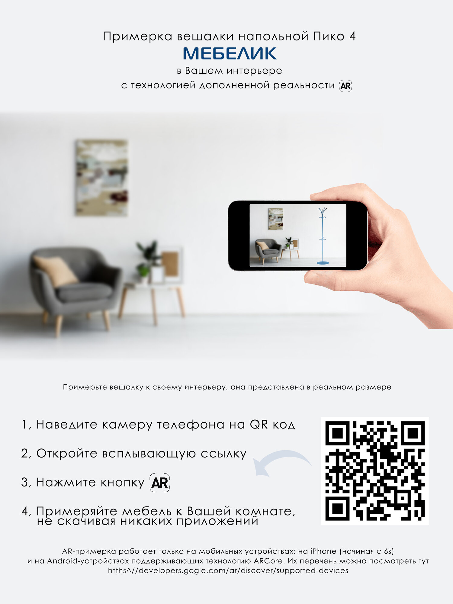 Вешалка Мебелик Вешалкa напольная ПИКО-4 металлик