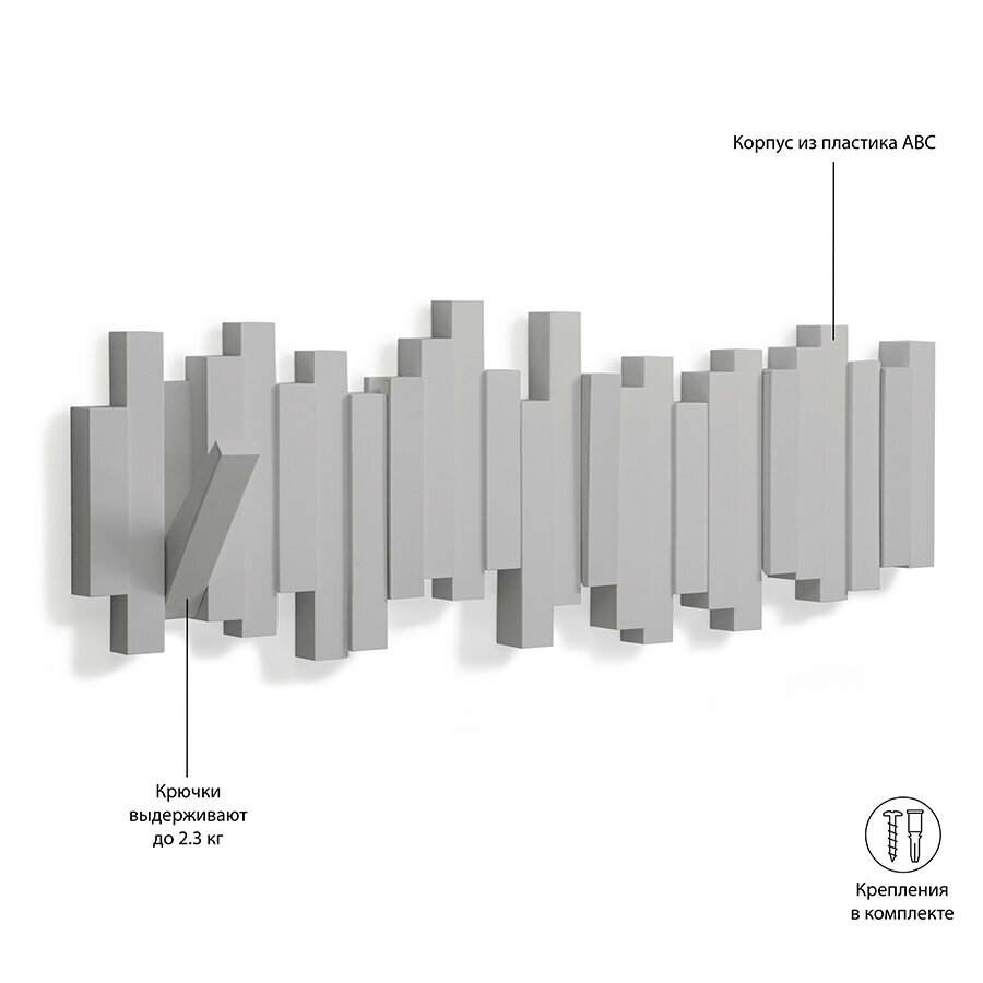 Вешалка настенная Umbra Sticks 5 крючков, серая