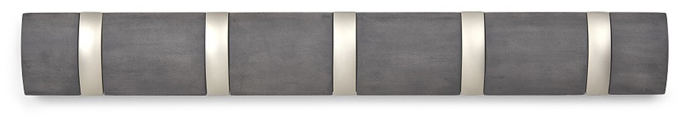 Вешалка настенная горизонтальная 5 крючков Flip 51х7х3,1 см, цвет серый, материал дерево + металл, Umbra, Канада, 318850-1143