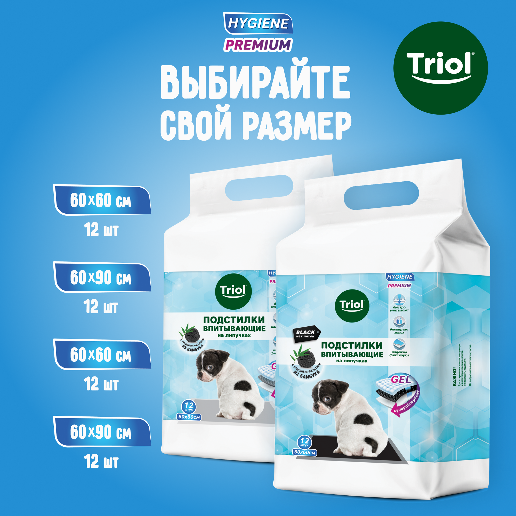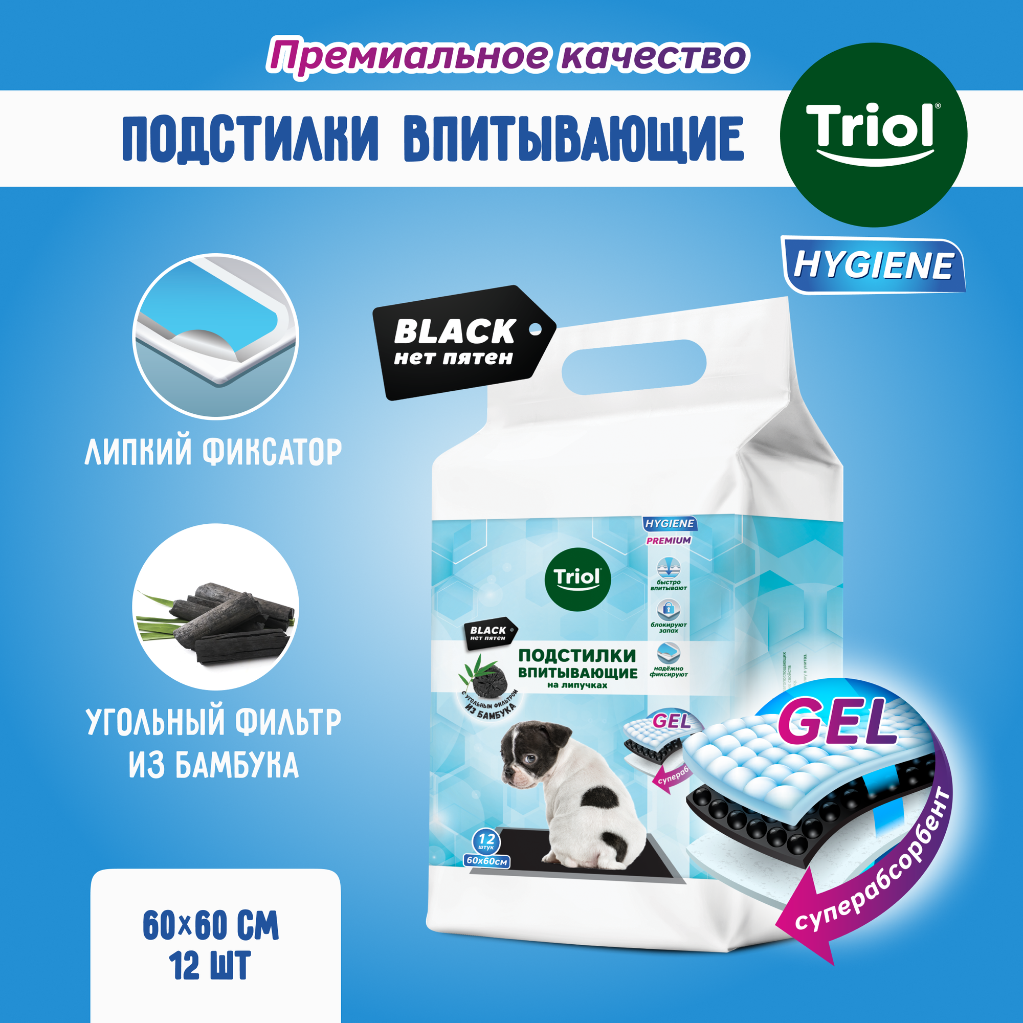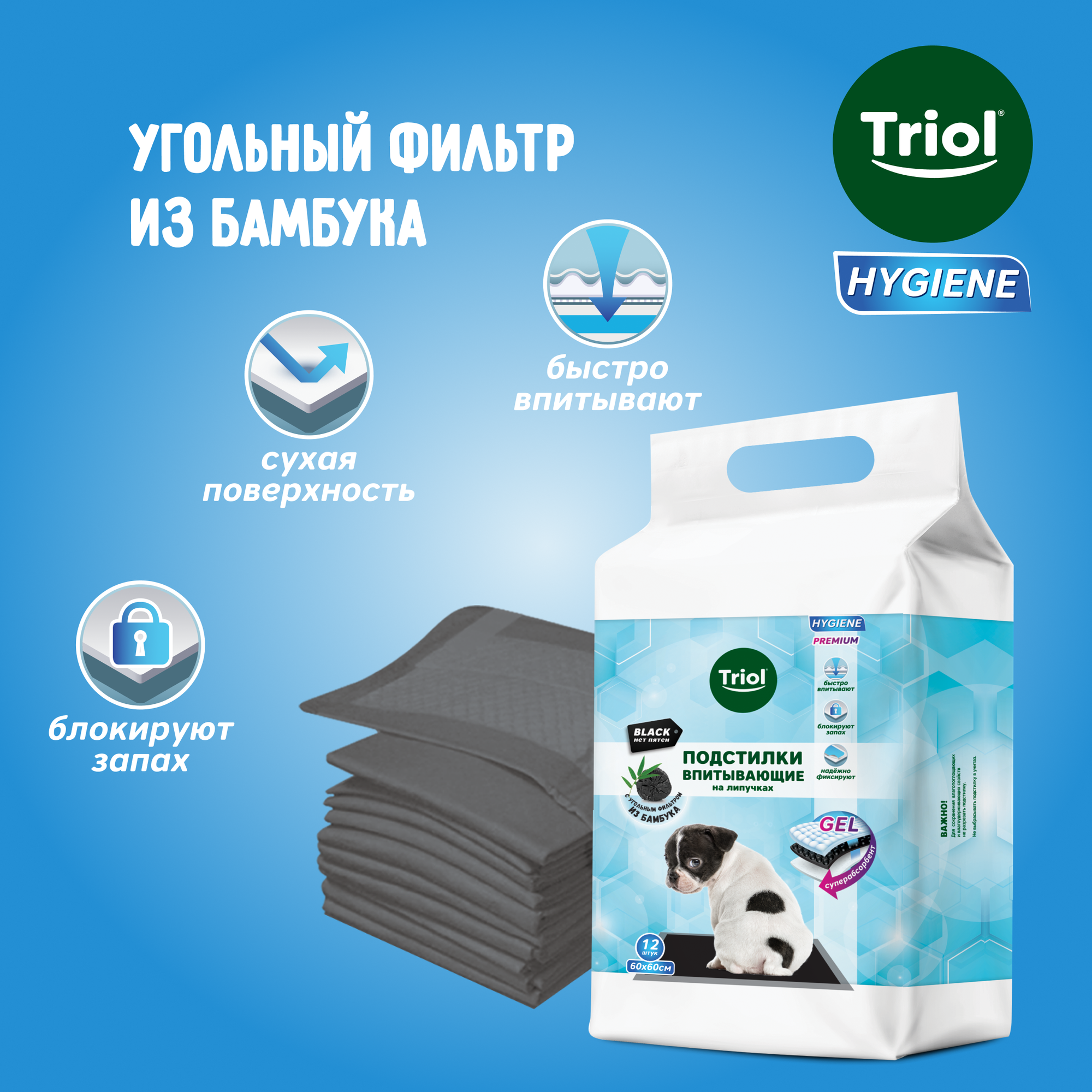 Пеленки одноразовые Triol впитывающие с угольным фильтром на липучках, 60х60 см (уп.12 шт.)