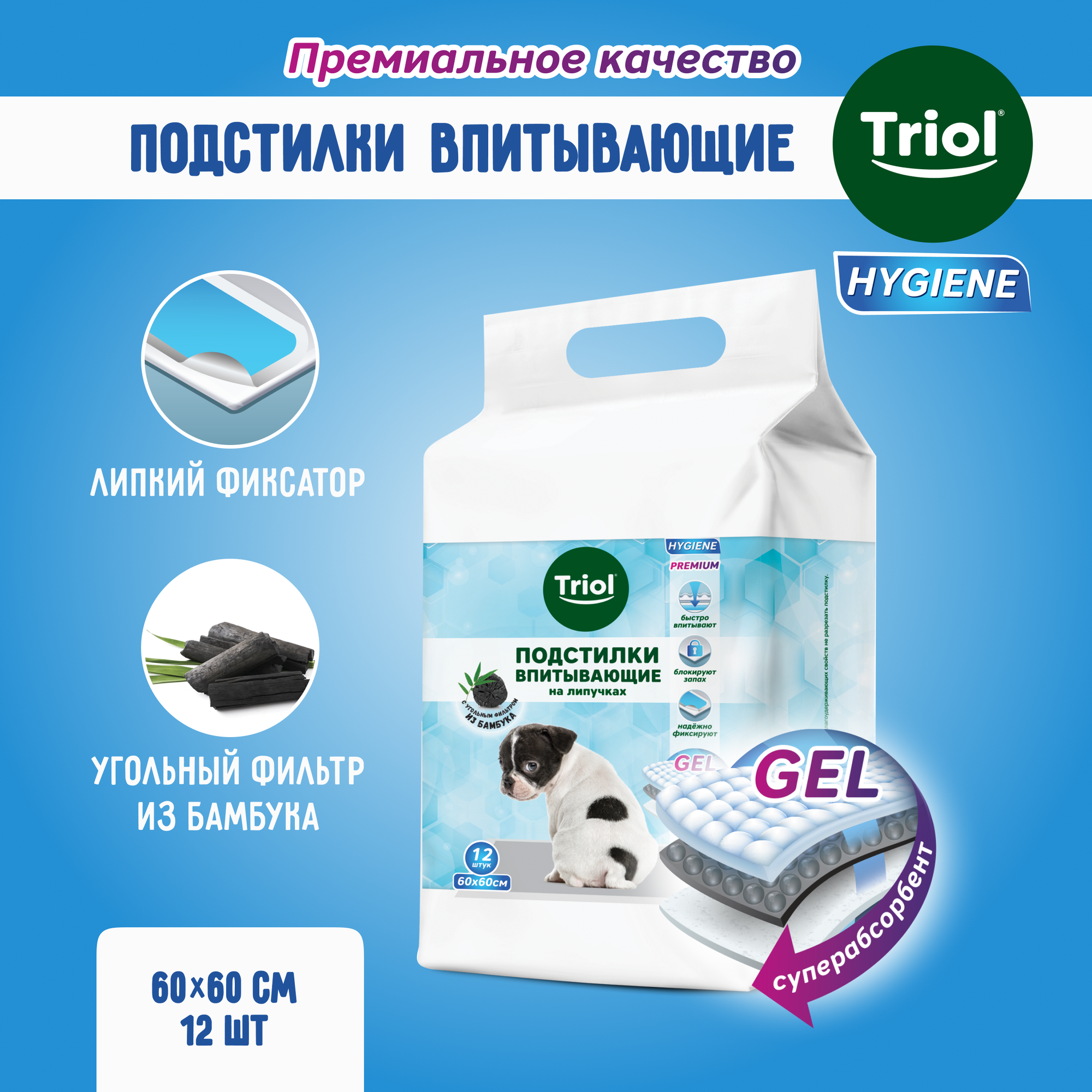 Купить Подстилки впитывающие для животных с угольным фильтром на липучках Triol 60 х 60 см (12 шт)