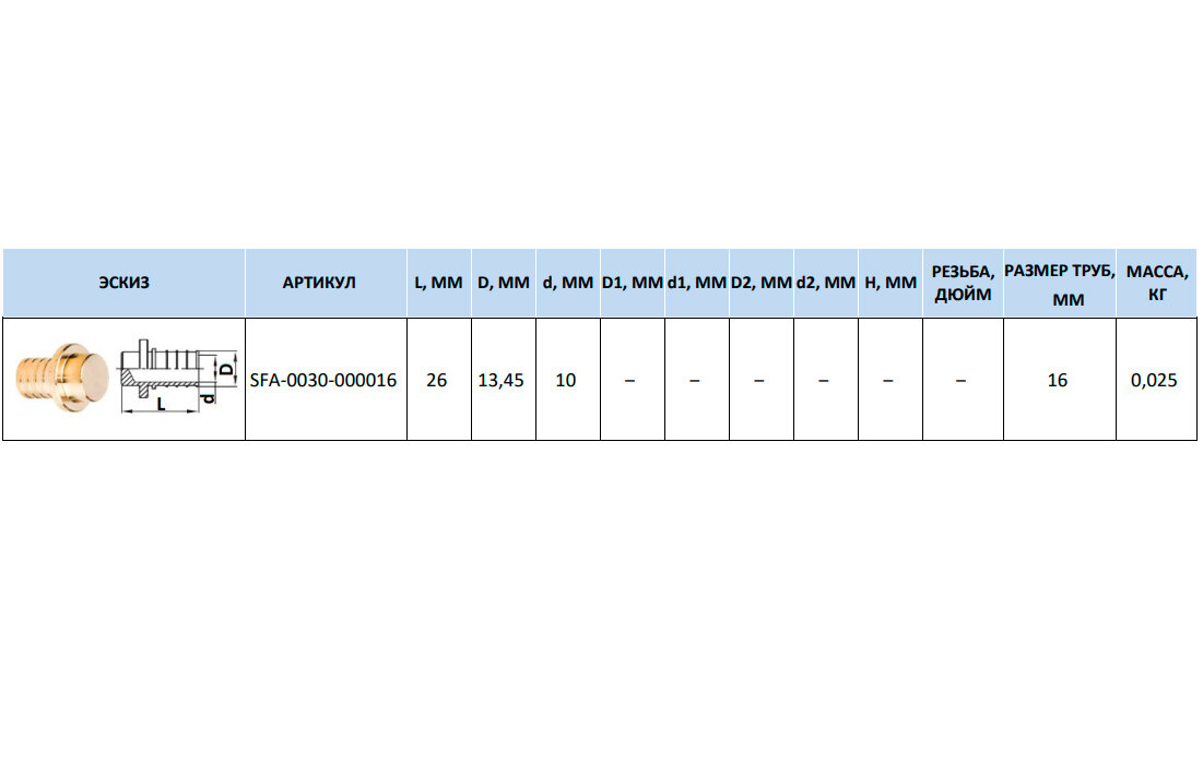 | Диаметр трубы | 16 мм |