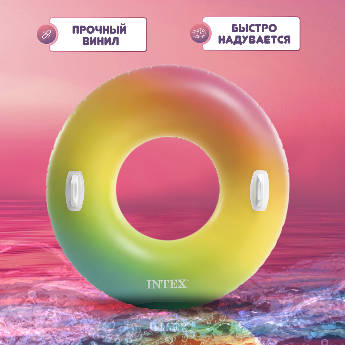 Надувной круг для плавания с ручками Rainbow Ombre, 122 см, INTEX (от 9 лет) (58202EU) (58202EU)