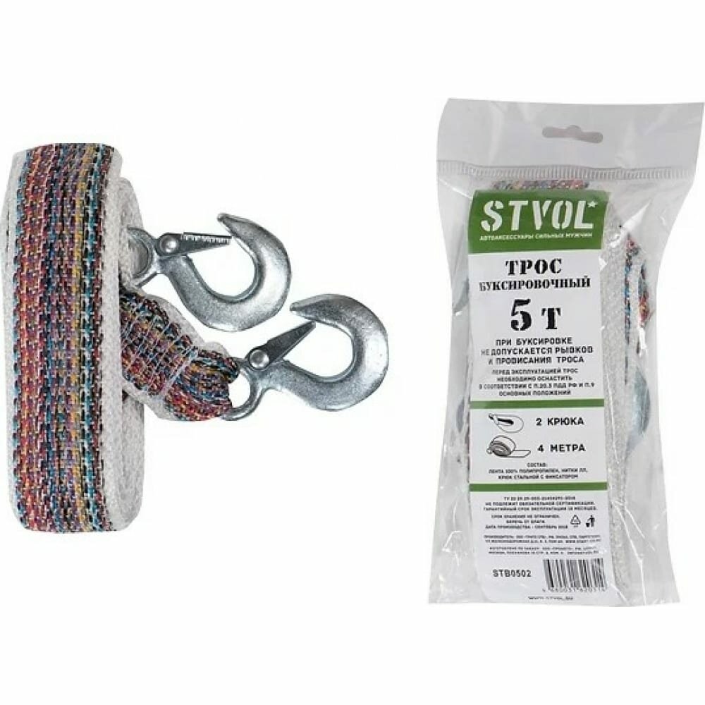 STVOL stb0502 трос буксировочный stvol 5 т 2 крюка 4 метра шт