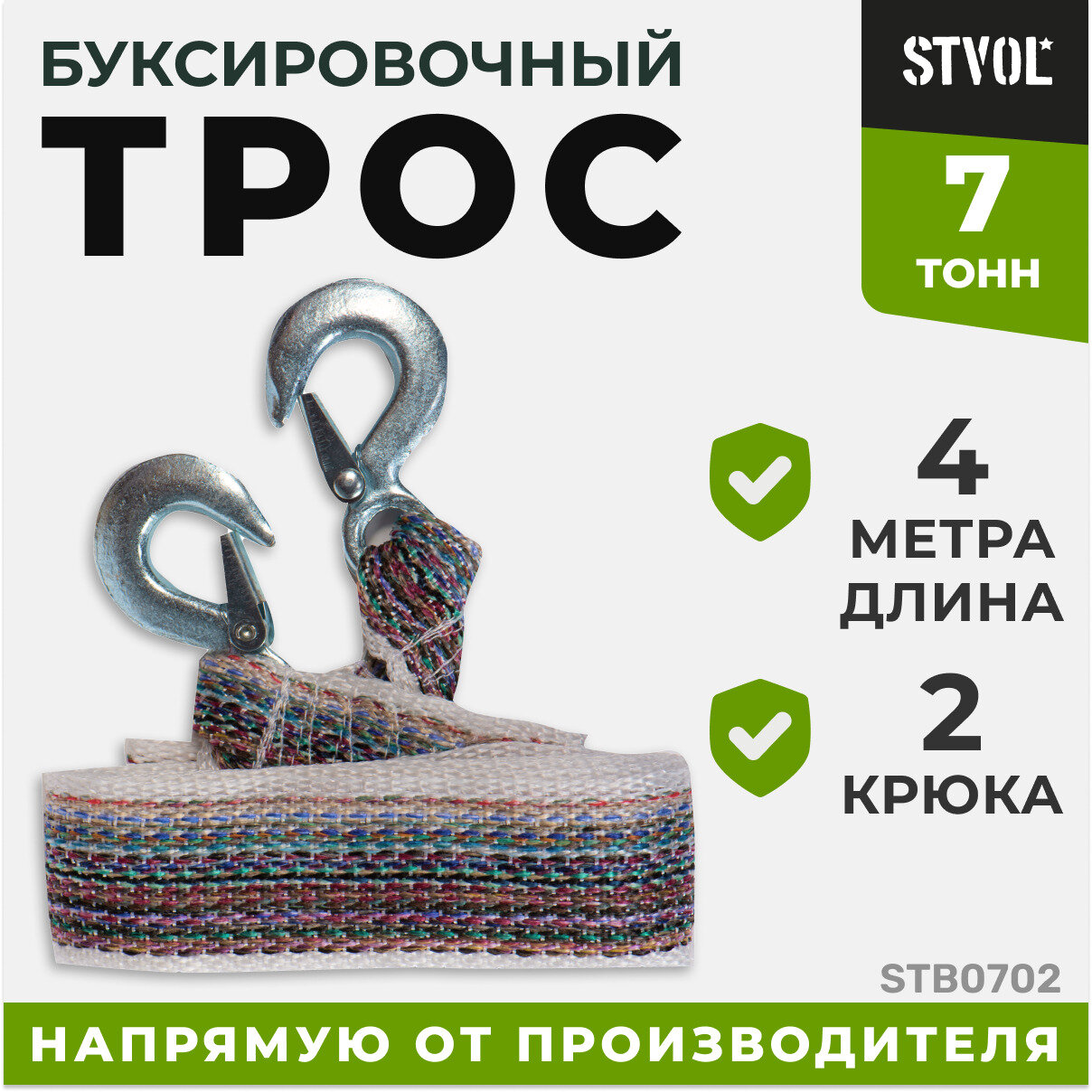 Купить STB0702 STVOL Трос буксировочный STVOL 7 т 2 крюка 4 метра шт