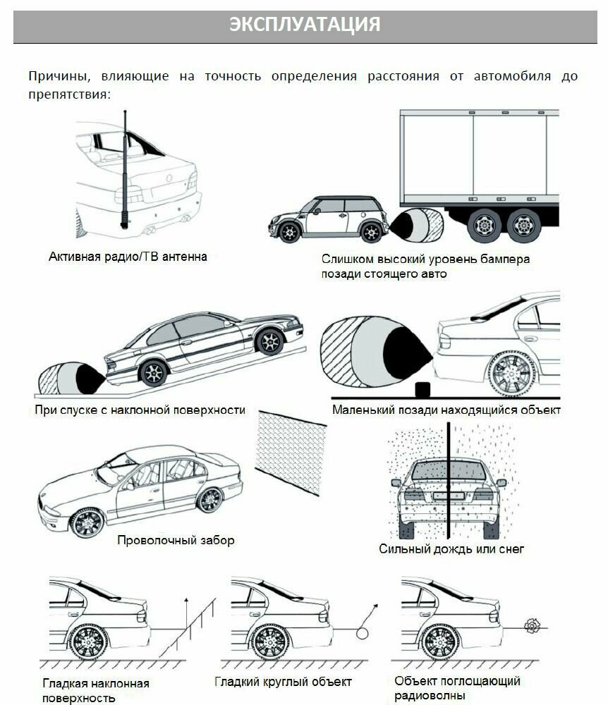 | Особенности | активация задней передачей / встроенный динамик / окрашиваемые датчики / самодиагностика датчиков |