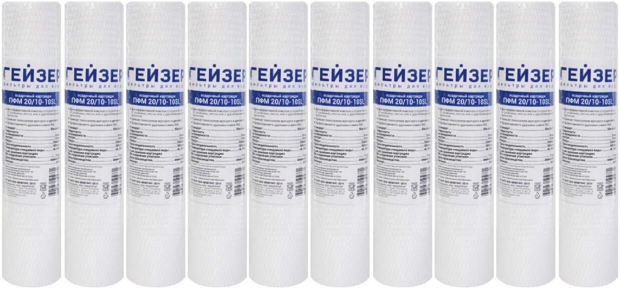 Ниже Вы можете прочитать отзывы на Полипропиленовые картриджи механической очистки Гейзер ПФМ 20/10 - 10SL, 28216 - 10 шт., ознакомится с подробными характеристиками, посмотреть интересные обзоры и фотографии на Полипропиленовые картриджи механической очистки Гейзер ПФМ 20/10 - 10SL, 28216 - 10 шт..