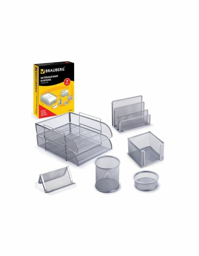Набор BRAUBERG настольный из металла, 7 предметов, серебристый