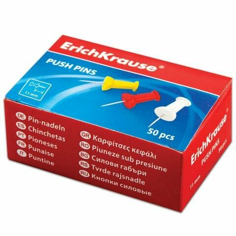 Силовые кнопки-гвоздики ERICH KRAUSE, цветные, 50 шт., в картонной коробке, 24877 224639