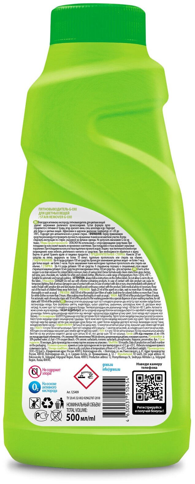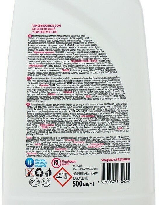 Grass Пятновыводитель для цветных тканей с активным кислородом "G-OXI Gel color", 500 мл 125409