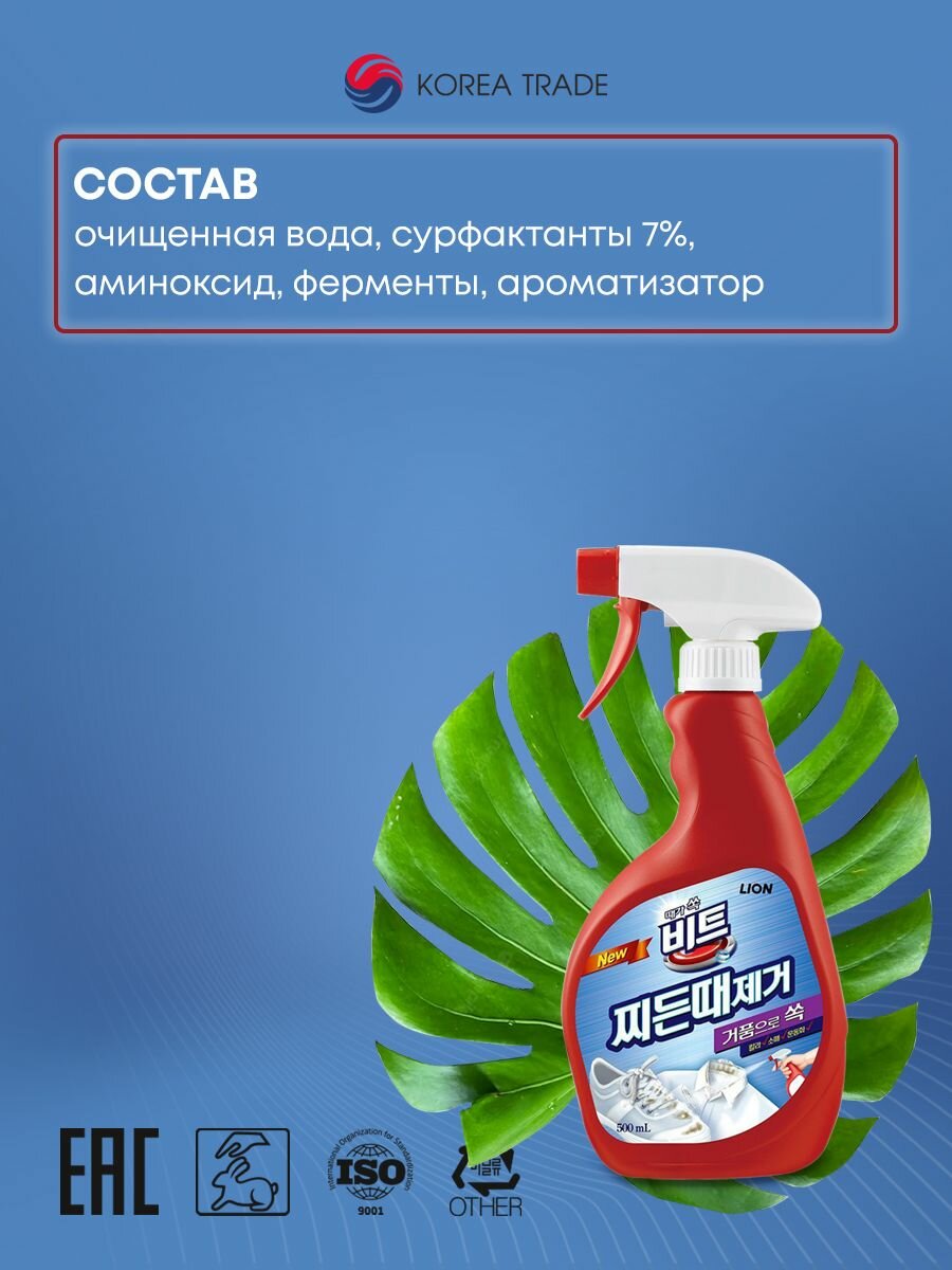 Жидкое чистящее средство Beat для обработки ткани перед стиркой, спрей 500 мл CJ Lion 3726941 .