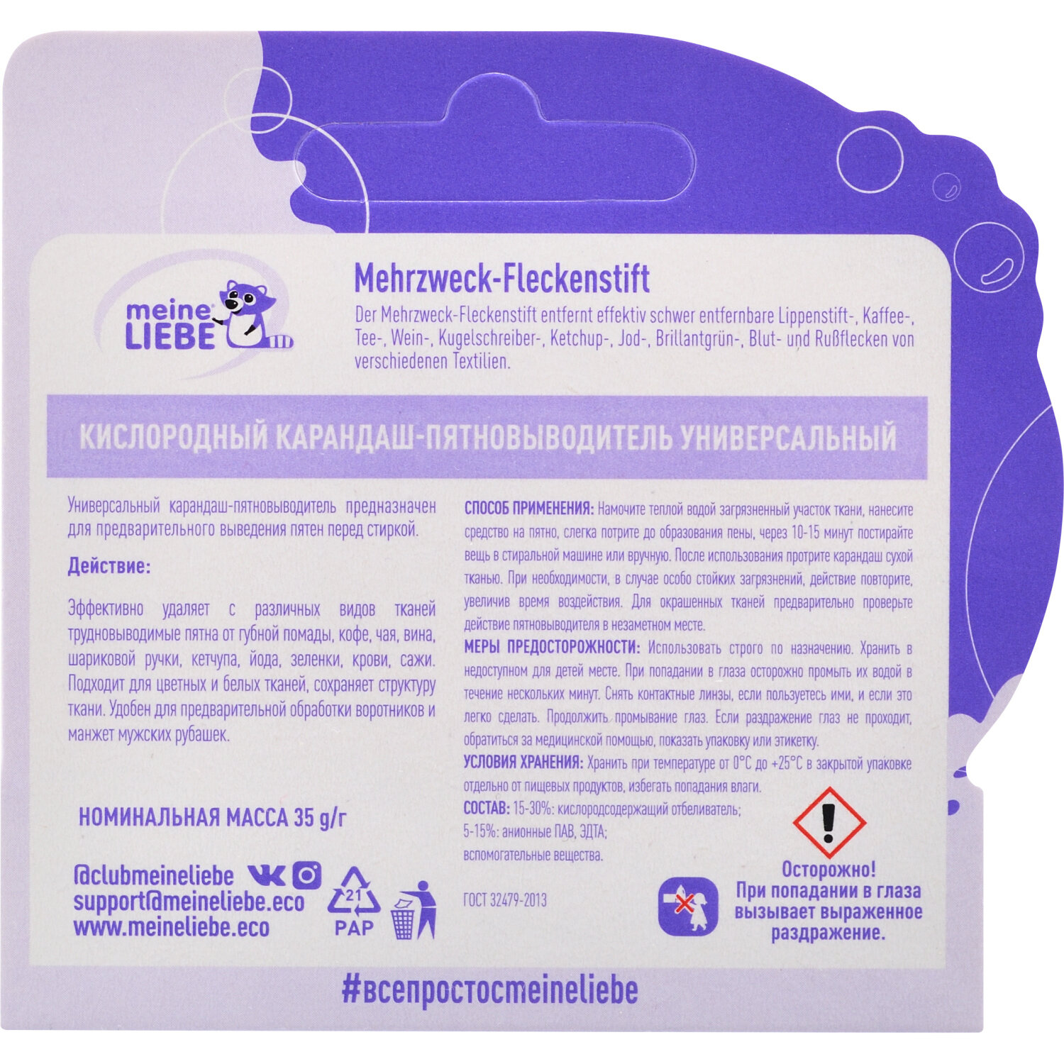 СохранитьMeine Liebe кислородный карандаш-пятновыводитель универсальный интересное: