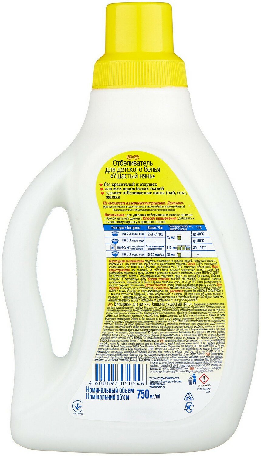 Отбеливатель жидкий "Ушастый нянь", для детского белья, 750 мл