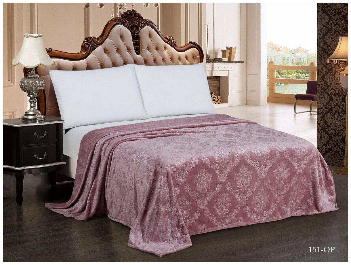 Плед 180х200 2-спальный Cleo Parma розовый шампань, покрывало на кровать и диван пушистое с рисунком, велсофт