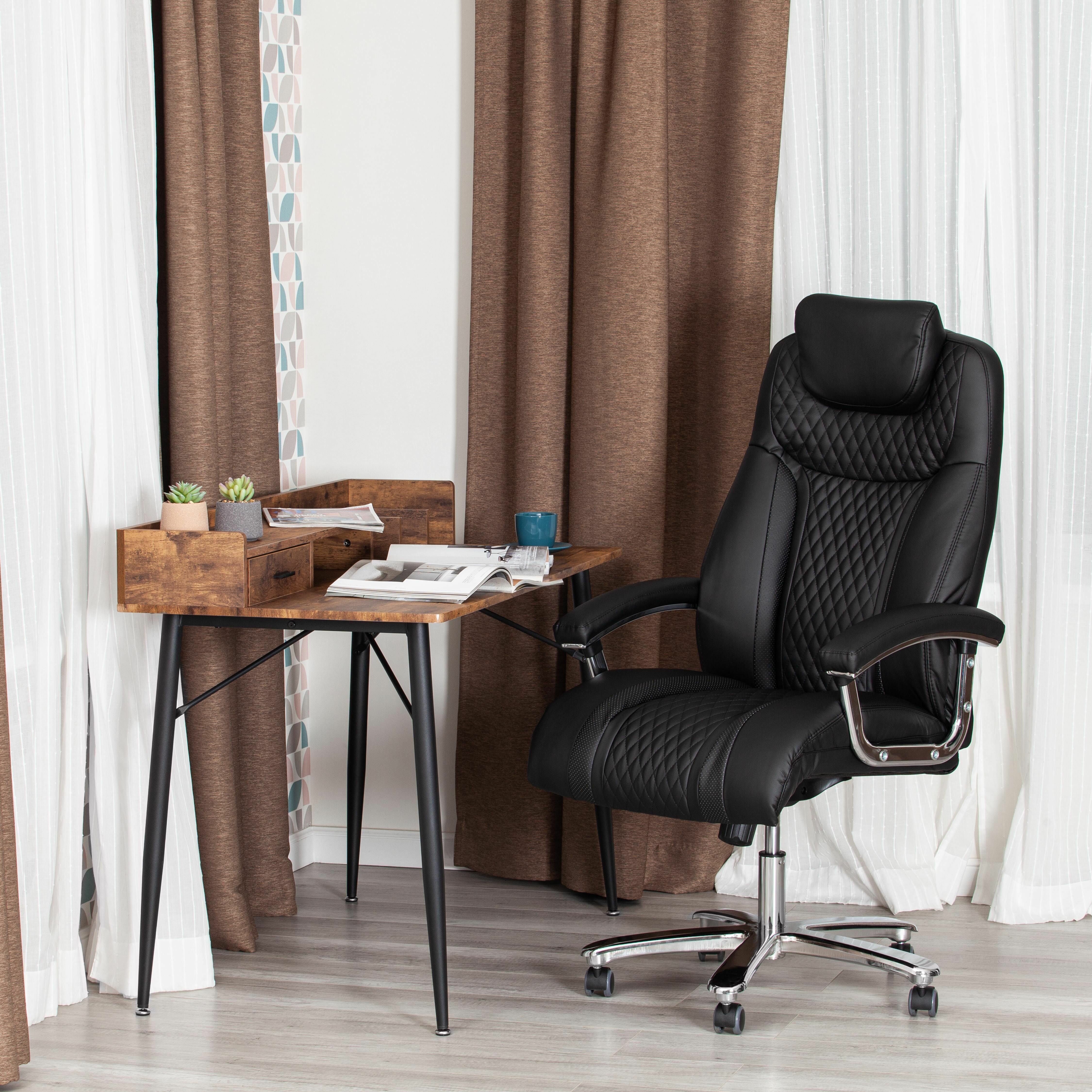 Компьютерное кресло руководителя TetChair Trust (max), кож/зам, черный/черный стеганный
