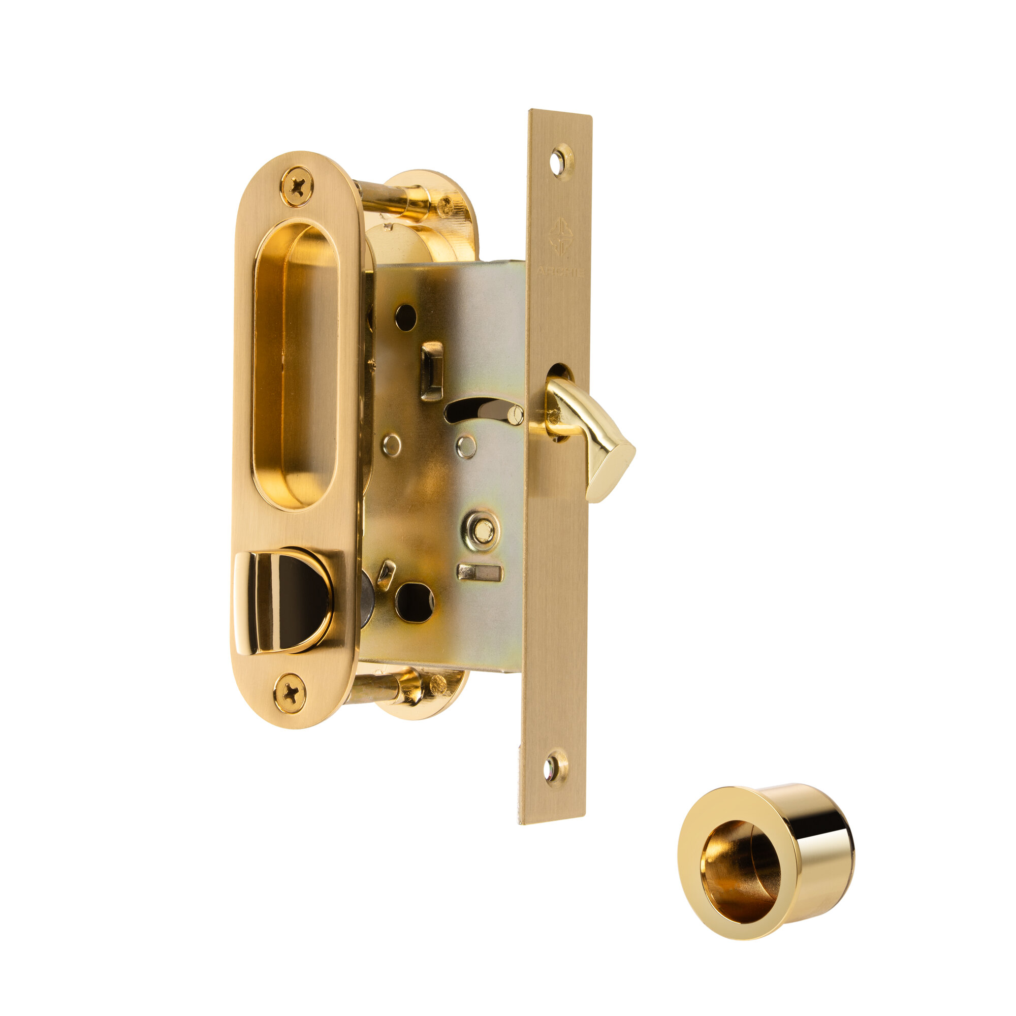 Ручки для раздвижных дверей с замком Archie А-К 01/02-V1II мат.золото защелка, фиксатор, ключ