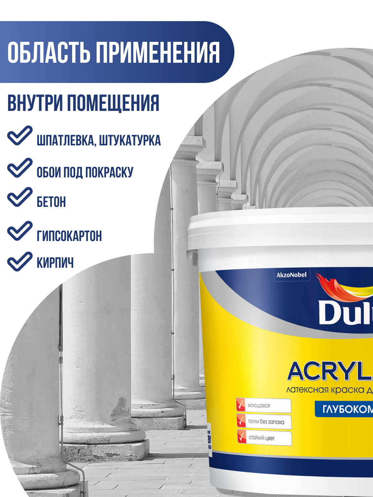 Краска Dulux Acryl Matt BW латексная для стен, потолков и обоев, 9 л